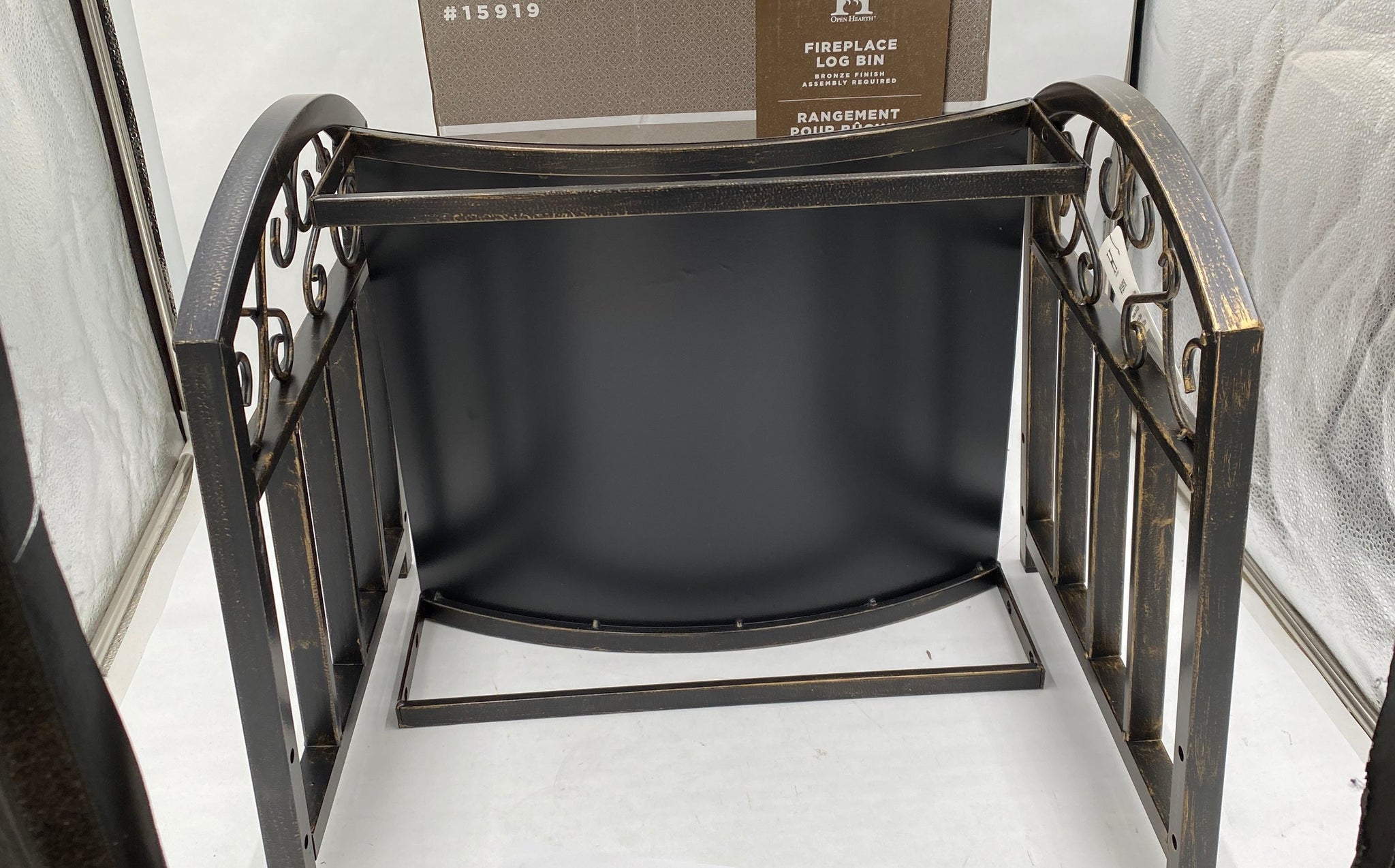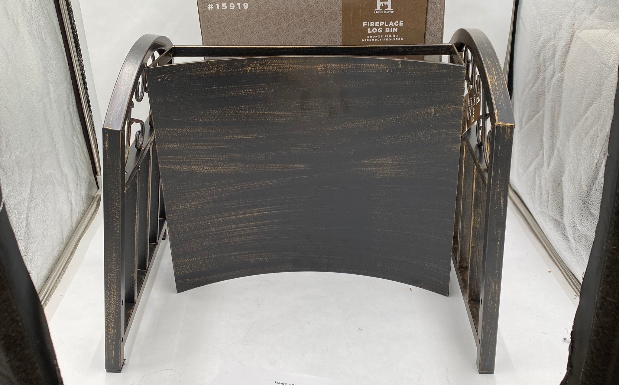 Open Hearth Bronze Finish Fireplace Log Bin Scroll Top Style